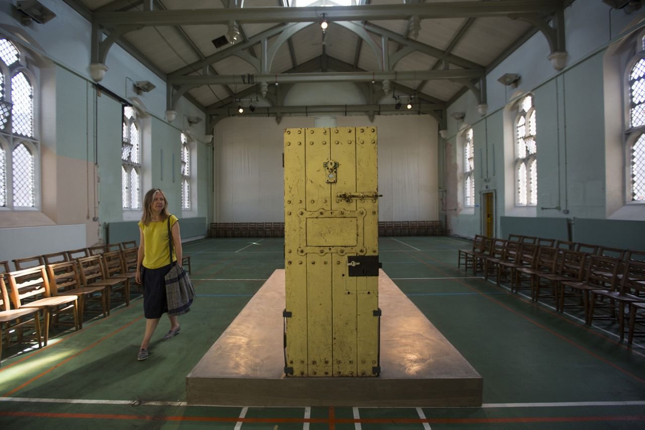 A visitor looks at former inmate Oscar Wilde’s prison cell door on display in the prison Chapel on Sept. 1, 2016 in Reading, England. The former Reading Prison has opened to the public for the first time, inviting artists and writers in to take part in a new project by Artangel, with works by leading artists including Marlene Dumas, Robert Gober, Nan Goldin, Steve McQueen, and Ai Weiwei. The exhibition opens to the public from September 4, 2016. Included in the exhibit is former inmate Oscar Wildes original wooden cell door, which is on display in the prison chapel. (Photo: Dan Kitwood/Getty Images)